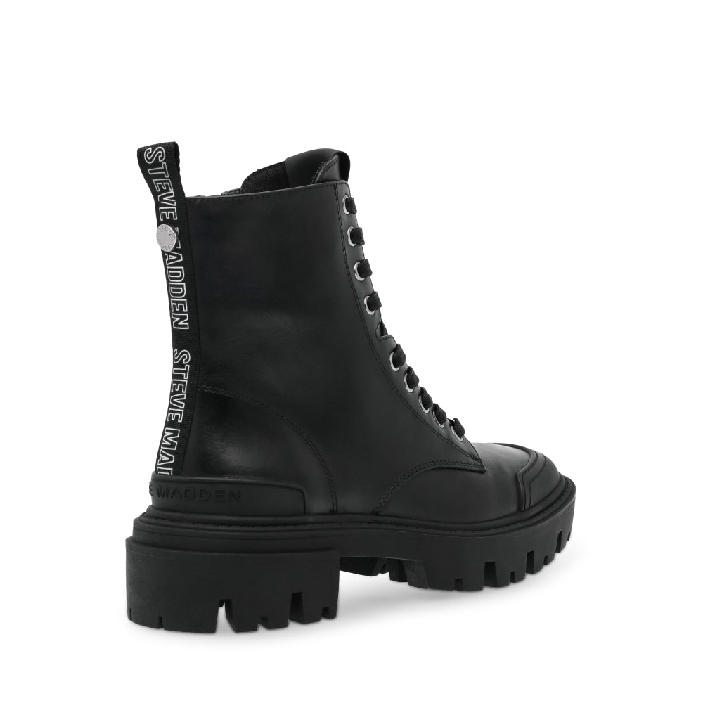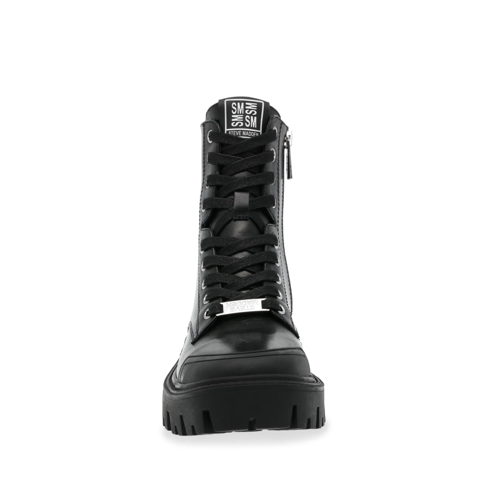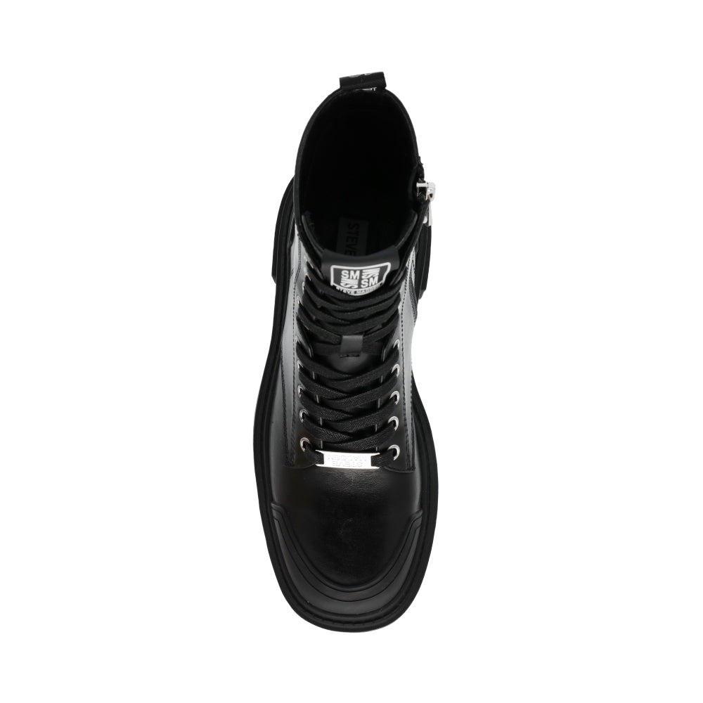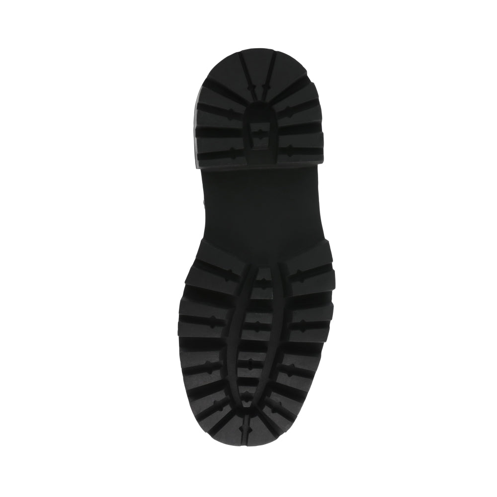 AMPLIFIER BLACK LEATHER se apodera de las calles con su suela gruesa y su silueta con agujetas. Lo puedes usar con un suéter grande para un look casual o con un vestido.